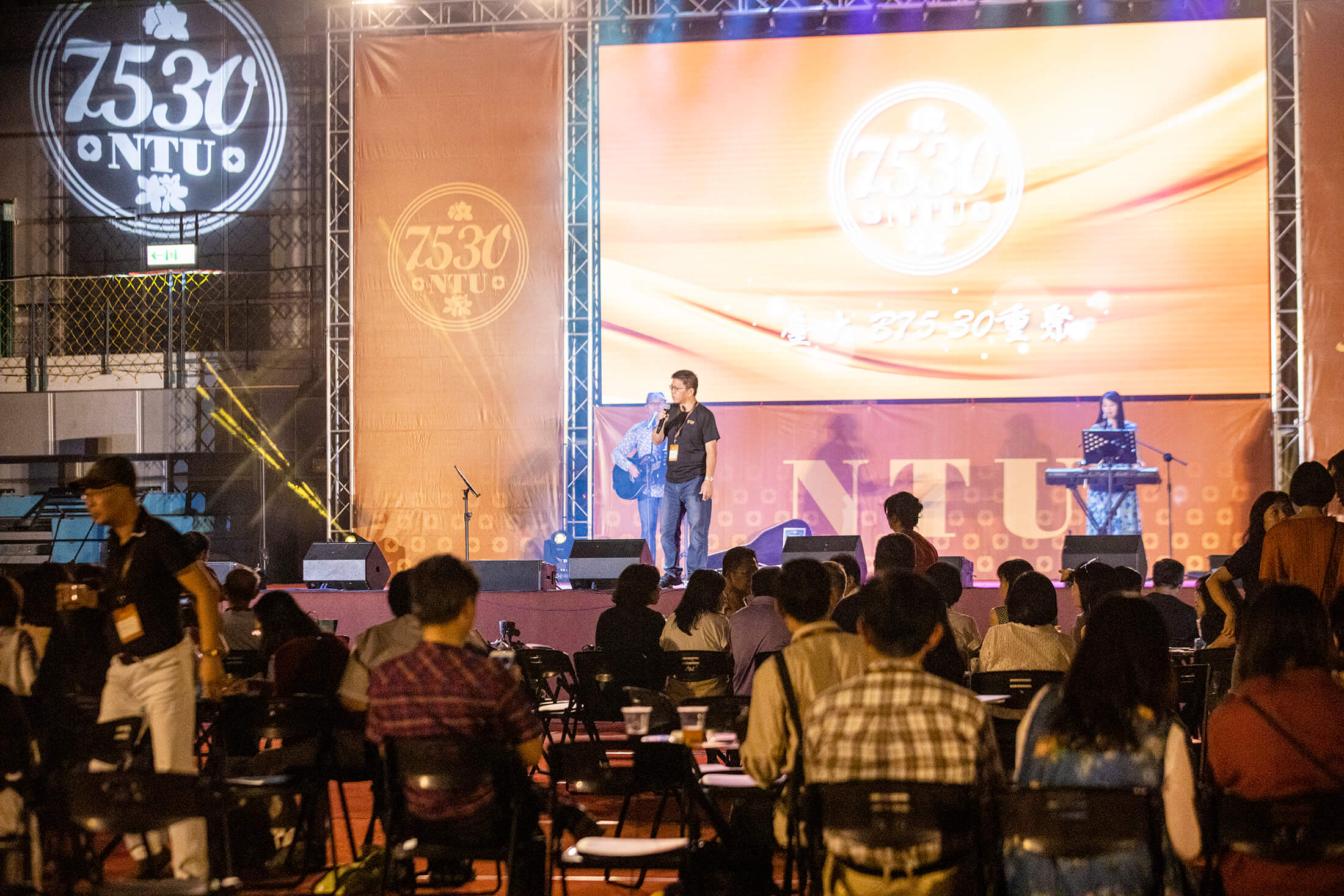 而今年因 COVID-19 沒有與台大畢業典禮合辦,舞台由寶宥團隊重新設計過,以 300 吋電視牆搭配巨型帆布來襯托主舞台的氣勢。